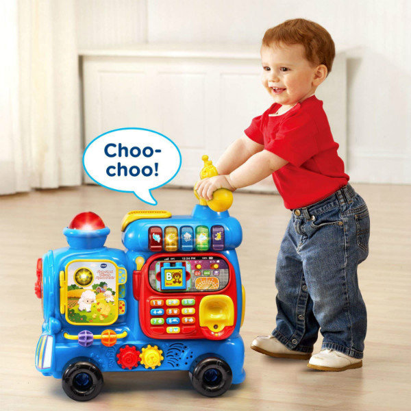 - Более 100 песен, мелодий и фраз: Интерактивный паровозик оснащен огромным количеством обучающего контента, который знакомит ребенка с буквами, счетом, цветами, животными и многим другим (на английском языке, в зависимости от версии игрушки).